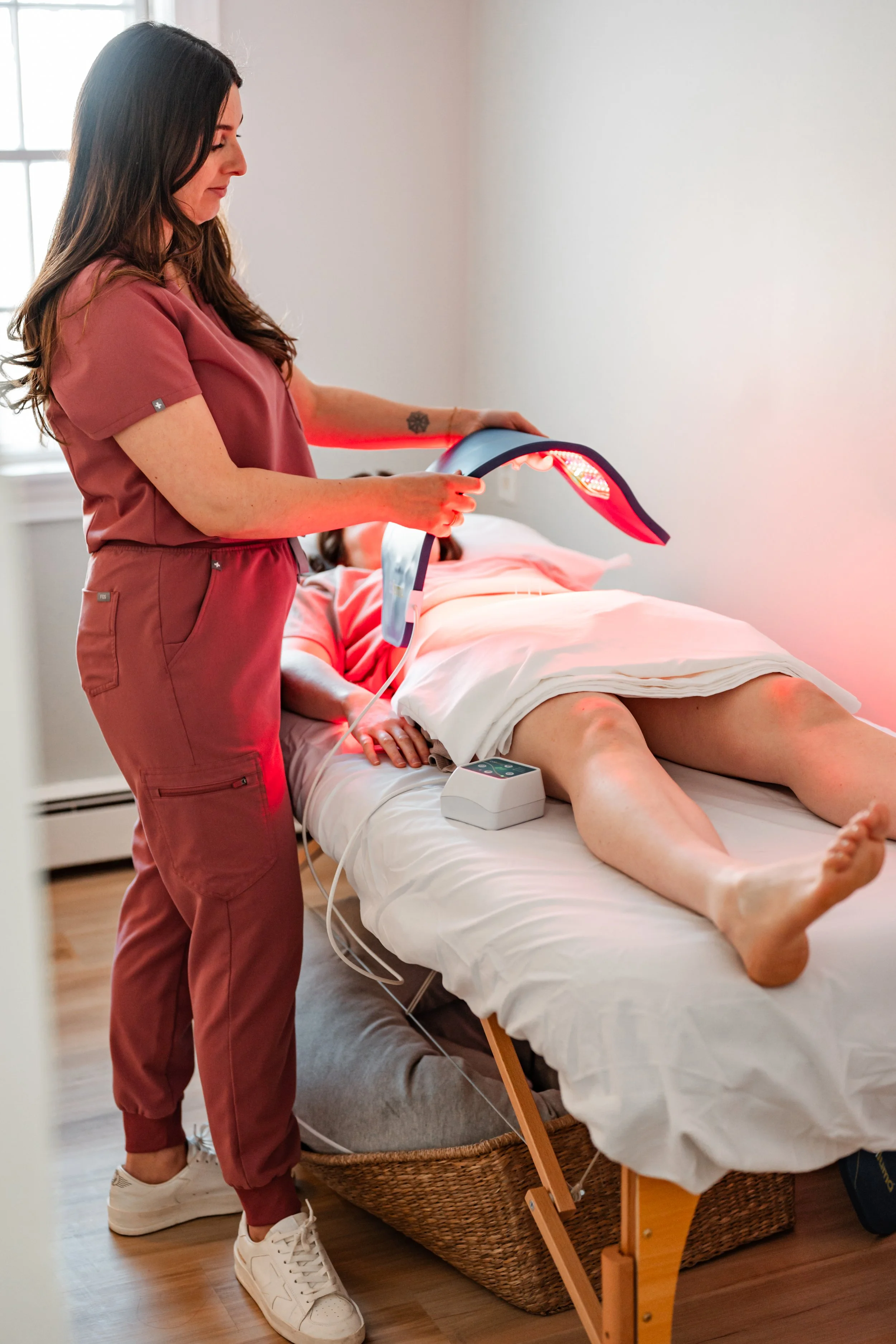 Acupuncture should not be painful after a C-section. Very fine needles are placed away from the incision area, and treatments are adapted to support healing, circulation, and scar mobility while keeping the body comfortable. In some cases, red light therapy may also be used to support tissue repair and gentle recovery.